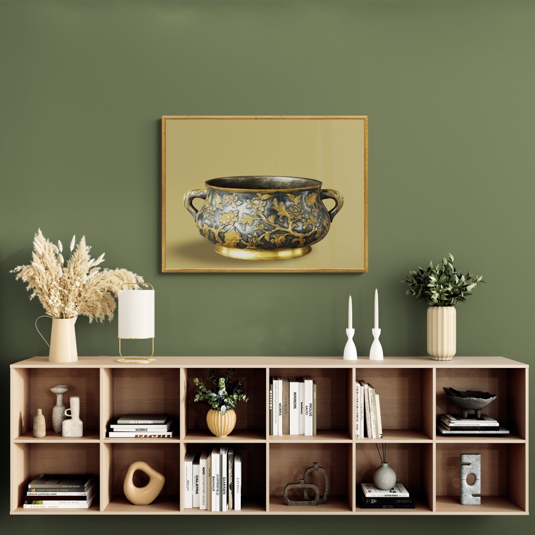 China – Bronzes & other metalworks – Wall art – Photo – Gilded incense burner, copper alloy, 17-18th-century