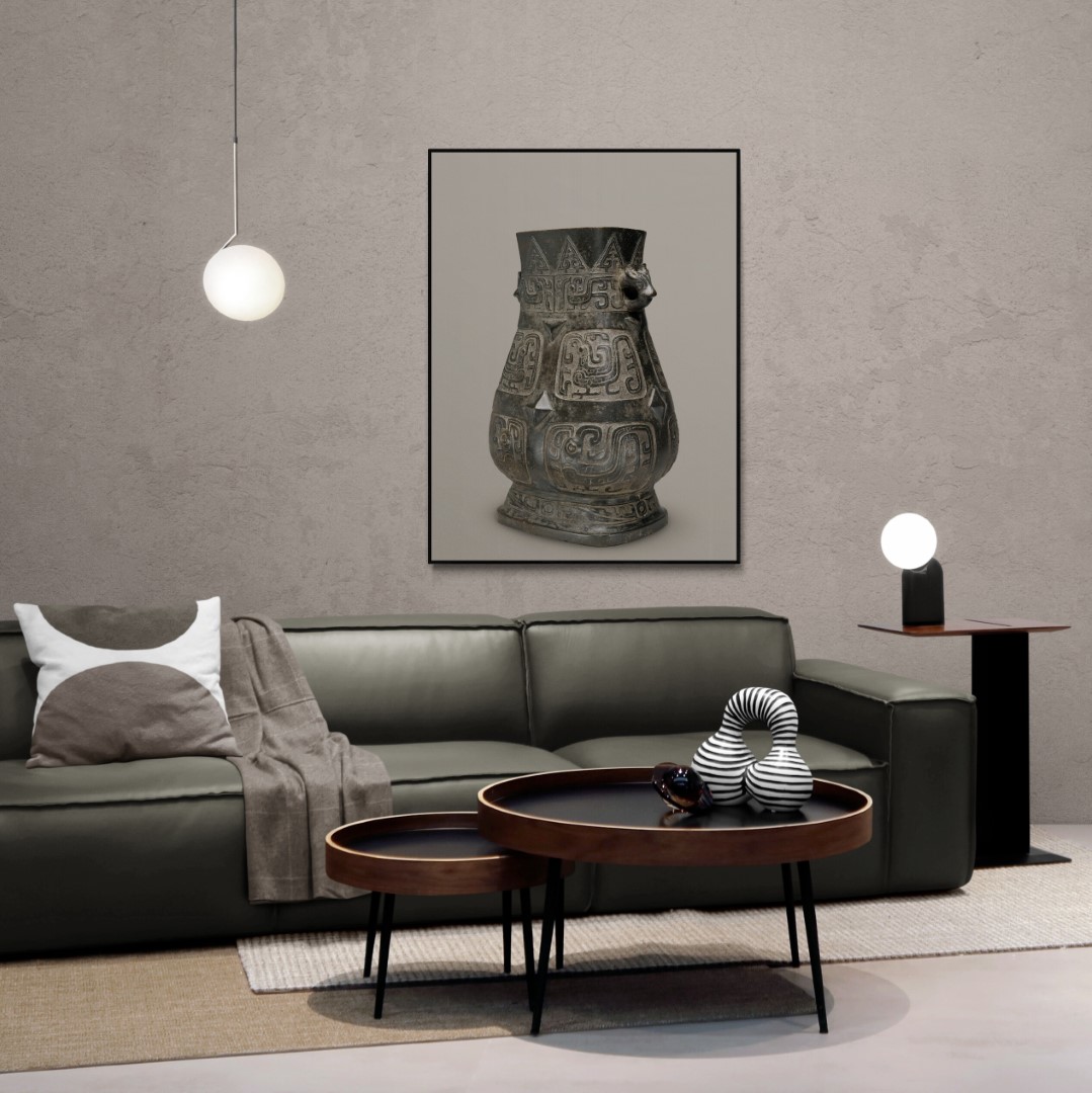 China – Bronzes & other metalworks – Wall art – Photo – Wine vessel with masks and spiral patterns, 8/10th-century