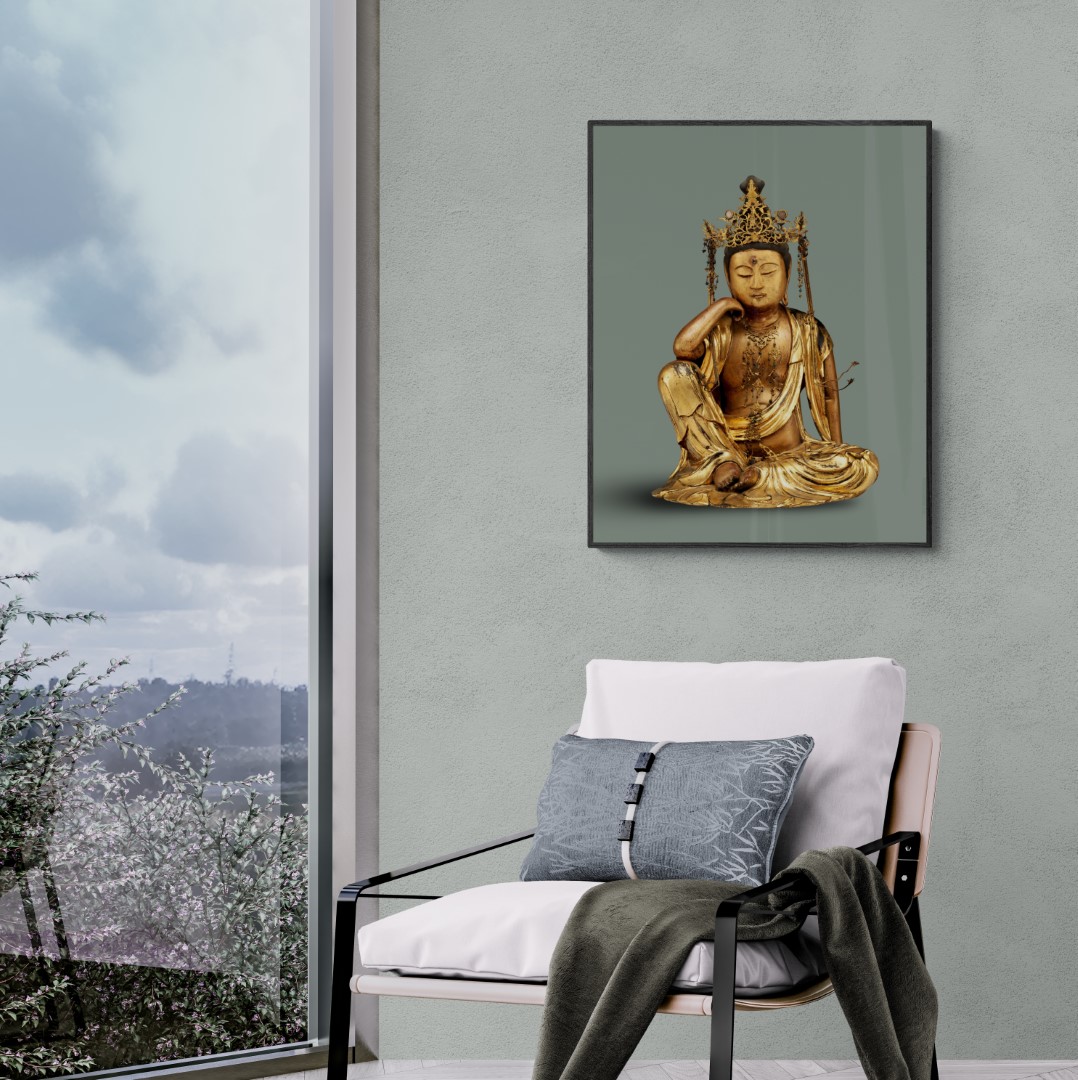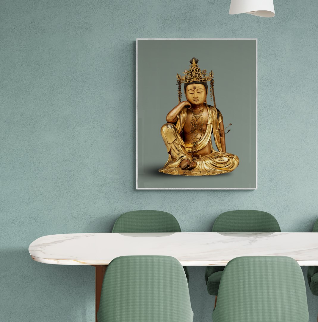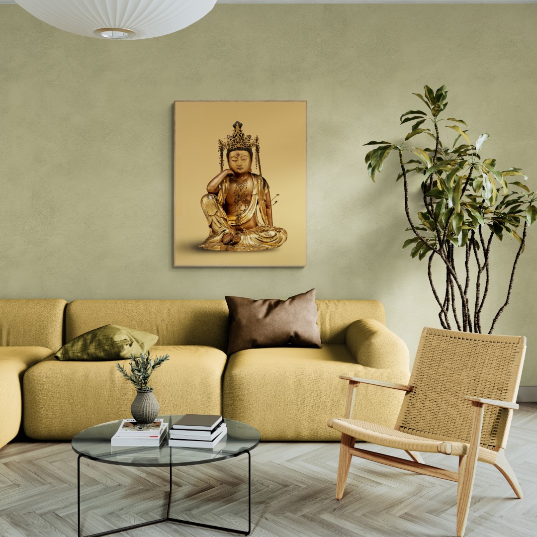 Japan – Buddha’s & Deities – Wall art – Photo – Nyoirin Kannon, Gilded wooden sculpture from 1693.