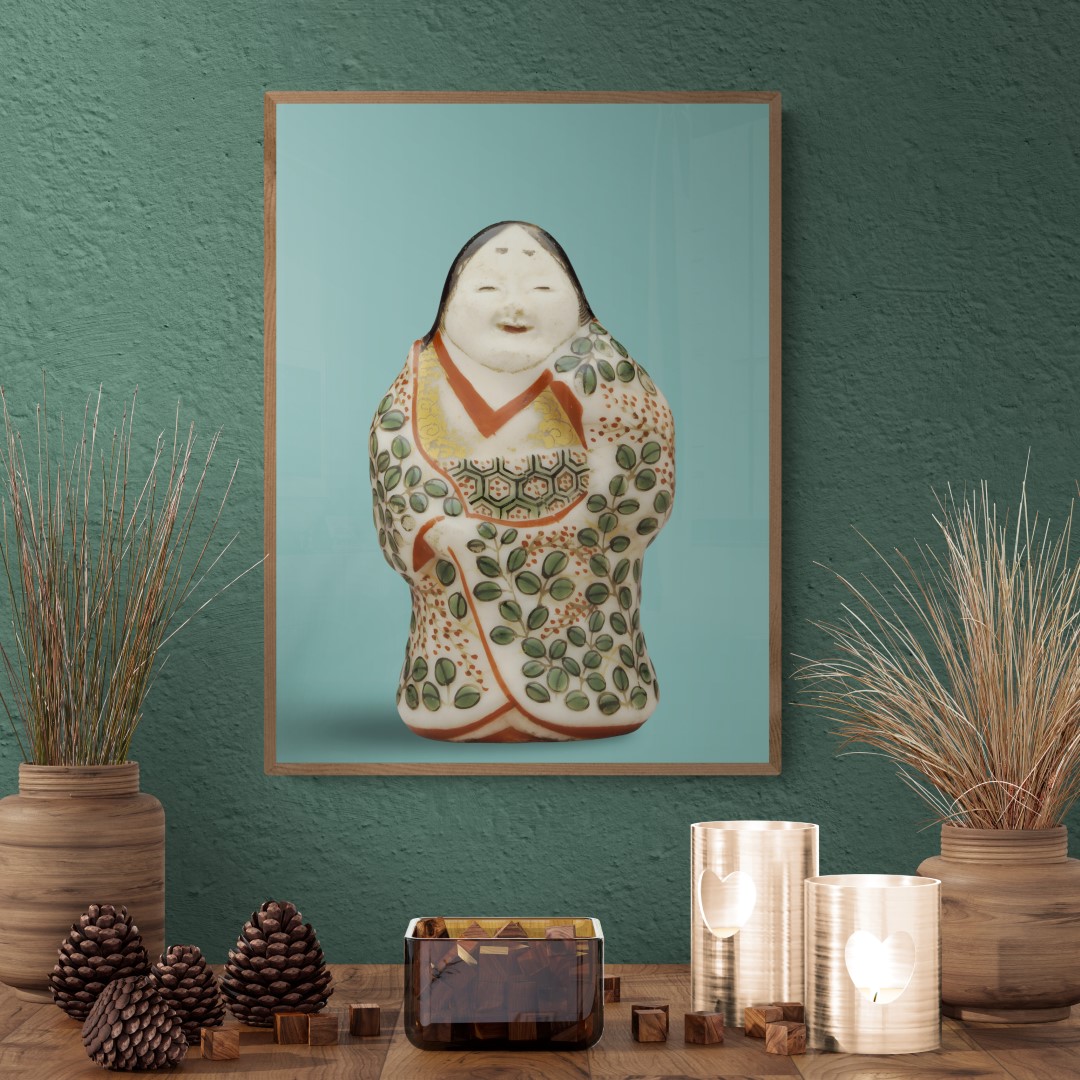 Japan – Ceramics – Wall art – Photo – Porcelain figure, of a woman, Banko ware, Okame female figure, Edo period, 19th century