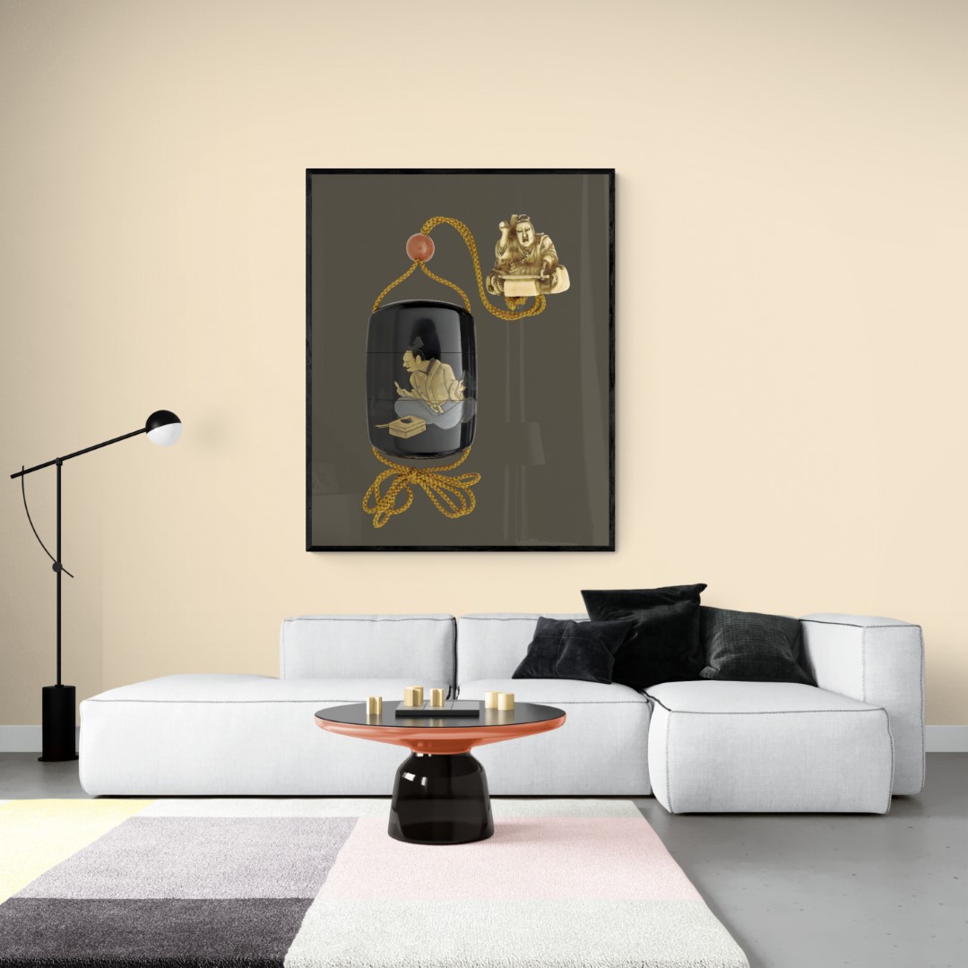 Japan – Inro – Wall art – Photo – inro with Ojime and Netsuke in ivory, 18th-century.