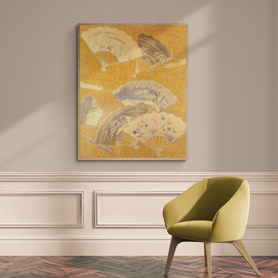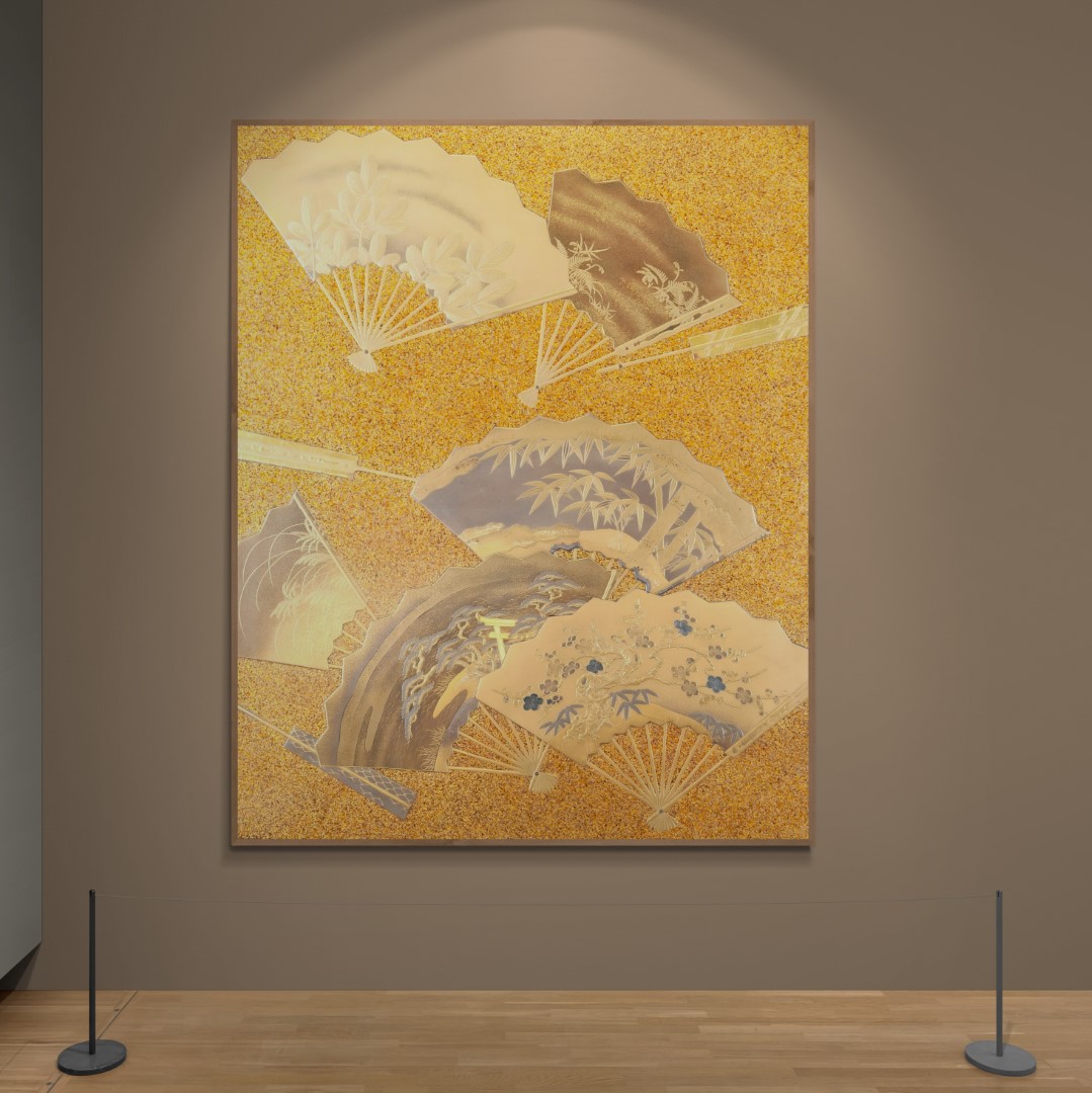 Japan – Lacquerware – Wall art – Photo – Cover of a writing box, Fans, 17th-century