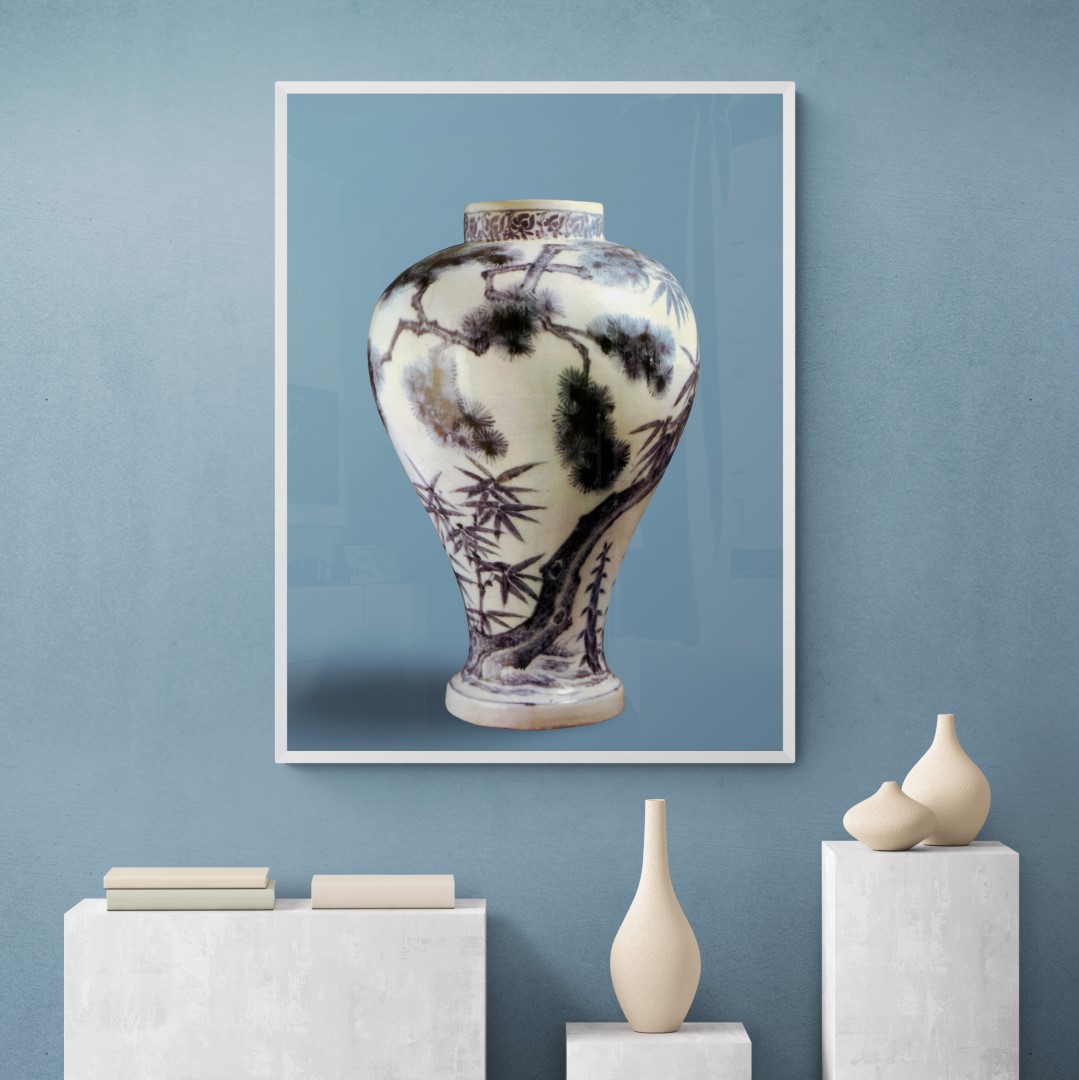 Korea – Ceramics – Wall art – Photo – Wine flask with plum and bamboo design, Joseon dynasty