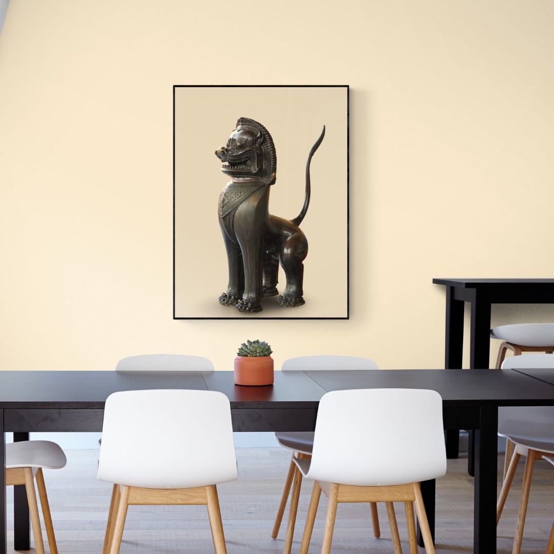 Thailand – Various objects – Wall art – Photo – Mythical lion, bronze temple statue.